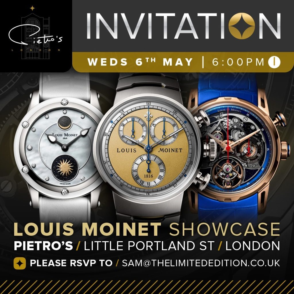 Louis Moinet will be joining us at Pietro’s Showroom on 6th May for a special presentation of the brand’s exceptional timepieces.