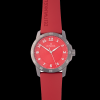 With its striking grey PVD coating and vibrant red dial with colour-coded natural rubber strap, the all new 240º model from Swiss independent company Zeitwinkel is a stylish, contemporary watch with a distinctly sporty personality. Measuring 40.5mm across, the round profile of the stainless steel case contrasts with the angular lugs, and the flat surfaces of its waist and sloping bezel. The screw-down crown is protected with shoulders either side and contributes to the watch’s 100 metre water resistance, making it both practical and versatile.