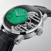 The ARMIN STROM Gravity Equal Force Jungle Green is a timepiece that seamlessly blends technical innovation with a striking aesthetic. The 41mm stainless steel case exudes a balance of brushed and polished surfaces, giving it a sophisticated and contemporary appearance. The sapphire crystals on both the front and caseback are treated with an anti-reflective coating, ensuring excellent visibility of the intricate dial and the impressive Calibre ASB19 movement within. The openworked architecture of the dial showcases the off-centered hand-guilloche Jungle Green-colored dial, a distinctive feature crafted by Comblemine/Kari Voutilainen. This green hue adds a unique and visually captivating element to the timepiece.