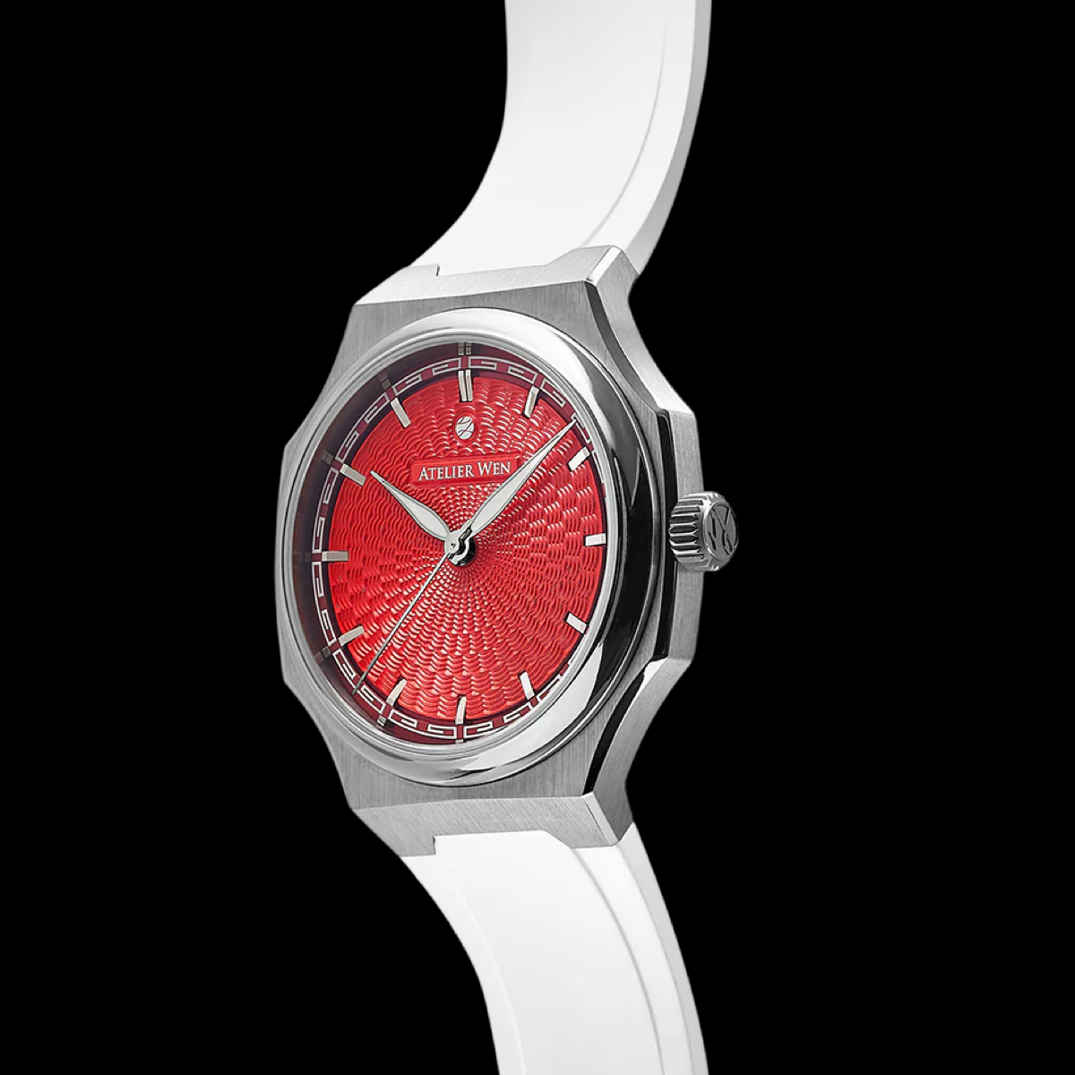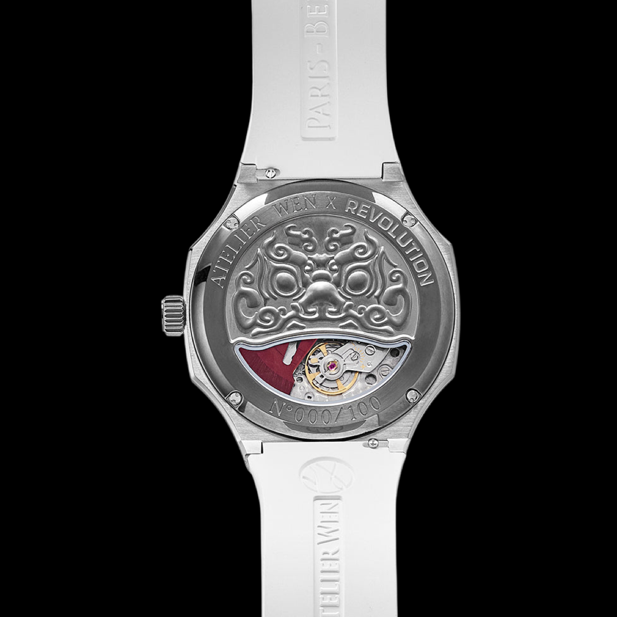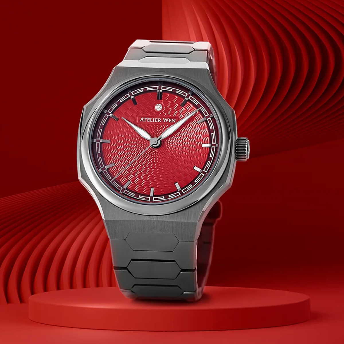 ?>The Atelier Wen X Revolution Perception “Xi” (喜) is a 100-piece, numbered limited edition that channels China’s highest artisanal watchmaking through a modern, sports-chic integrated bracelet platform. Housed in a 40mm Grade 5 titanium case and bracelet, it combines matte brushing with high-polish accents for sharp contrast, while keeping an impressively slim 9.4mm profile. Water resistance is rated to 40m, and the watch is finished with Super-LumiNova for low-light legibility.