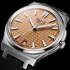 Czapek Antarctique Passage de Drake S Salmon watch. A Swiss made haute horlogerie luxury sports wristwatch in 38.5mm stainless steel case, water resistant to 120m and presented on an integrated steel link bracelet with folding clasp. Salmon dial with three dimensional trapezoidal ‘Stairway to Eternity’ pattern, featuring steel hands and indices with luminous accents, with hours, minutes, centre seconds and date functions. Sapphire caseback revealing in-house Calibre SXH5 self-winding movement with 56 hour power reserve and 4hz frequency (28,800vib/h)