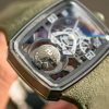 The case follows Hautlence’s signature TV-shaped design, executed in Grade 5 titanium. The mix of satin-brushed and polished surfaces adds contrast, while the dimensions of 37mm by 45mm and a height of 17.4mm give the watch real presence without excessive weight.