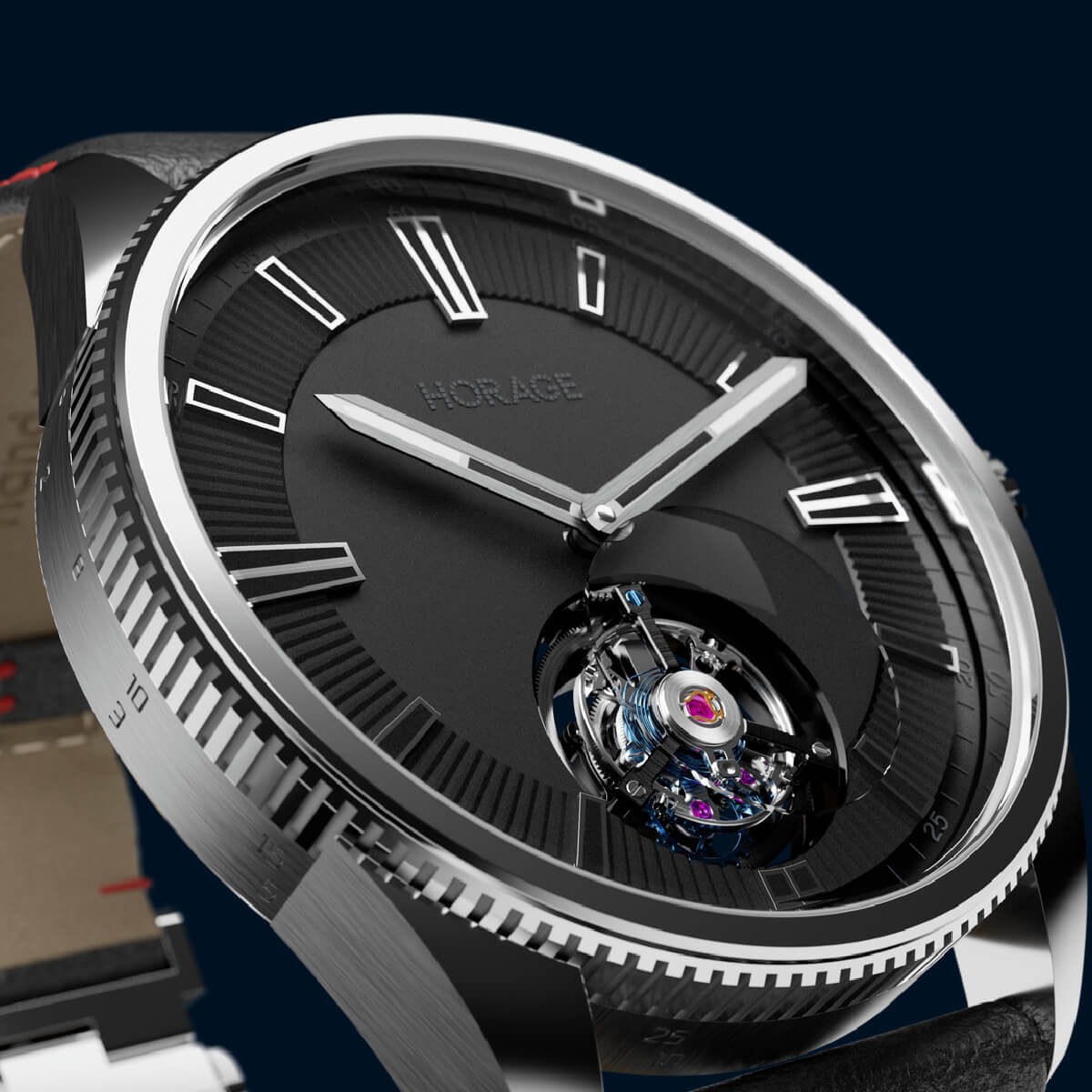 On the underside, a sapphire exhibition caseback reveals the contemporary architecture of the Horage K-TOU calibre, which beats at 25,200 vib/h (3.5Hz). Apart from the silicon components, which are sourced nearby in Germany, the movement is a feat of in-house innovation and is entirely designed, developed and manufactured in Switzerland by Horage.