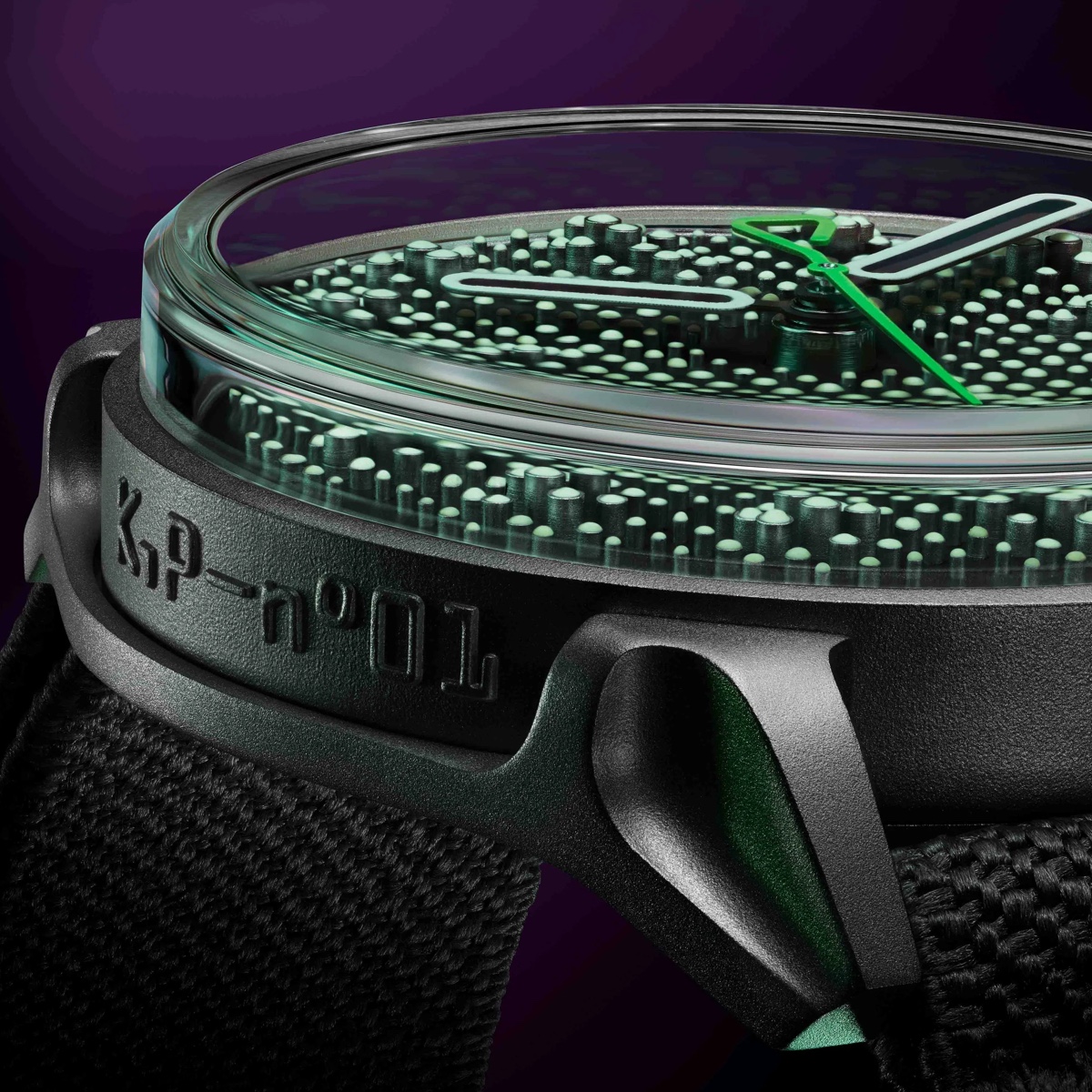 The matte black textured dial is adorned with 468 applied cylindrical markers, each hand-painted with Grade X1 Super-LumiNova for exceptional nighttime visibility. The hour and minute hands feature luminous outlines, and the fluorescent green seconds hand adds a vivid contrast. Powering the timepiece is the La Joux-Perret G101 automatic movement, delivering a 68-hour power reserve with a 4Hz beat rate (28,800 vph). With 24 jewels and an unsigned unidirectional winding rotor, it offers precision and reliability in a strikingly unique form.