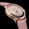 The Krayon Lady Anywhere watch. A bespoke Swiss made ladies haute horlogerie wristwatch by independent watch company Krayon in 39mm case of hand engraved 18ct rose gold, and presented on a pink alligator leather strap with pin buckle. Two-tone cream/beige dial with hours, minutes, date and month indications, and featuring sunrise/sunset and length of day display. Sapphire caseback revealing in-house manufactured hand finished calibre C030 manual winding movement with 86 hours power reserve and 3hz frequency (21,600 vib/hr).