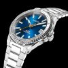 The Supersede Date Cenote Blue is presented in a round case which is manufactured in 904L stainless steel with a brushed finish, and measures 39.5mm across and 10.28mm tall. The unidirectional bezel has a highly tactile notched perimeter and features a single luminous triangle at the twelve o’clock position, while the fluted screw-in crown is protected by steel shoulders on either side.