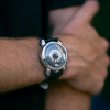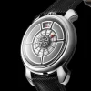 An exciting new addition to the independent watchmaking landscape, the Labormatic Bauhaus watch by Gagà Laboratorio is characterised by clean geometric lines and minimalist styling. The model is presented in a complex multi-part case of stainless steel measuring 42mm diameter that is enclosed with curved sapphire crystal on both the front and the rear, featuring a steel cabochon set crown at the 12 o’clock location. The unique profile of the case is complemented by an exceptional dial architecture with a digital hour and analog minutes indication paired with a central disc for the seconds. Powered by an automatic movement by prestigious Manufacture La Joux-Perret featuring a custom rotor, the watch wears on a hand-made leather strap.